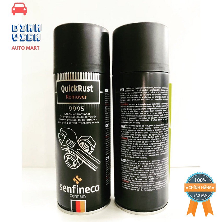 Ô tô > Dầu nhớt và phụ gia ô tô > Mỡ & Chất bôi trơn || [ Chuyên Nghiệp ] Chai Loại Bỏ Gỉ Sét Senfineco 9995 – 450ML Quick Rust Remover, Hàng Đức Chính Hãng – DV AUTO MART .Còn hàng