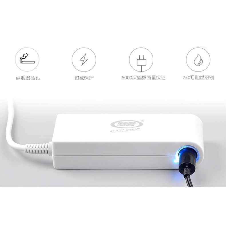Sản phẩm này sẽ giúp mang các thiết bị chuyên dụng cắm bằng đầu tẩu trên xe ô tô về sử dụng tại gia đình bằng nguồn điện 220v với công suất 10A - 120w sử dụng tốt cho các thiết bị như tủ lạnh, máy hút bụi, máy bơm lốp trên xe ... đảm bảo an toàn và hiệu năng cho các thiết bị.Kích thước: 20cm*6cm*4cm(D*R*C)