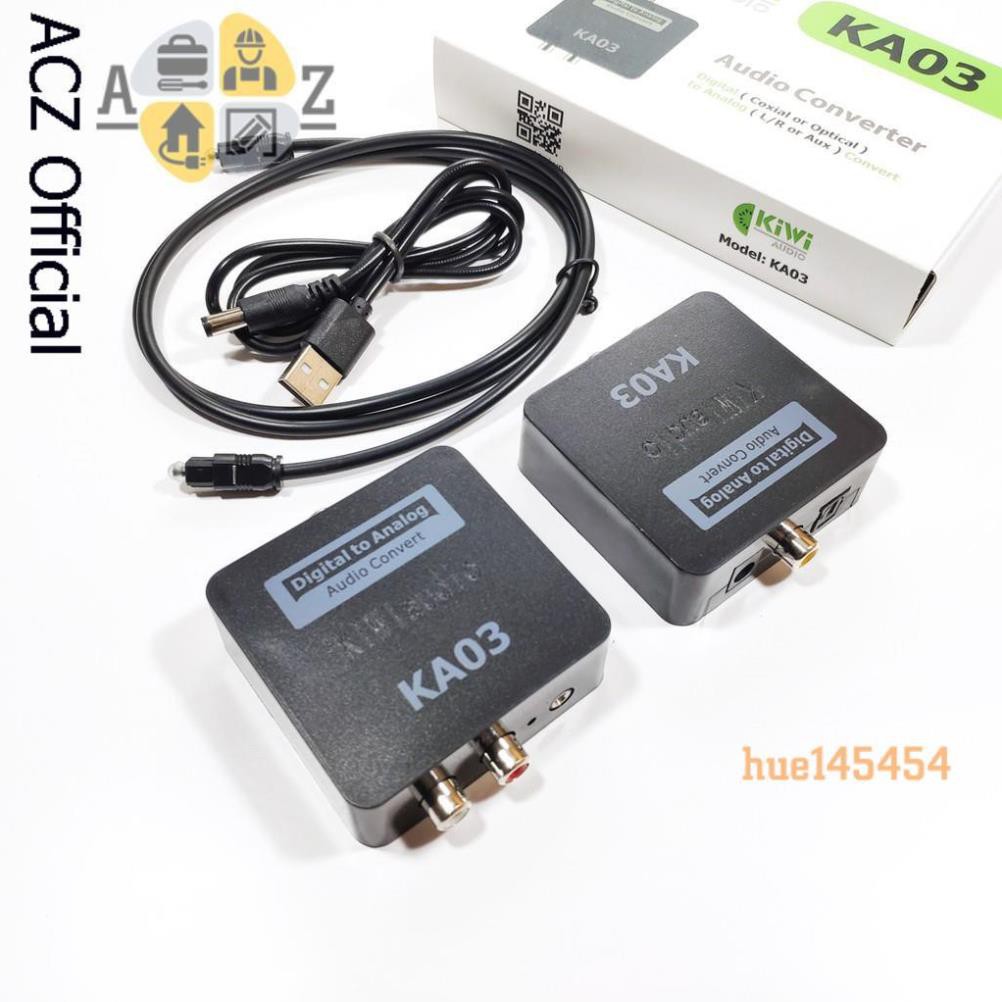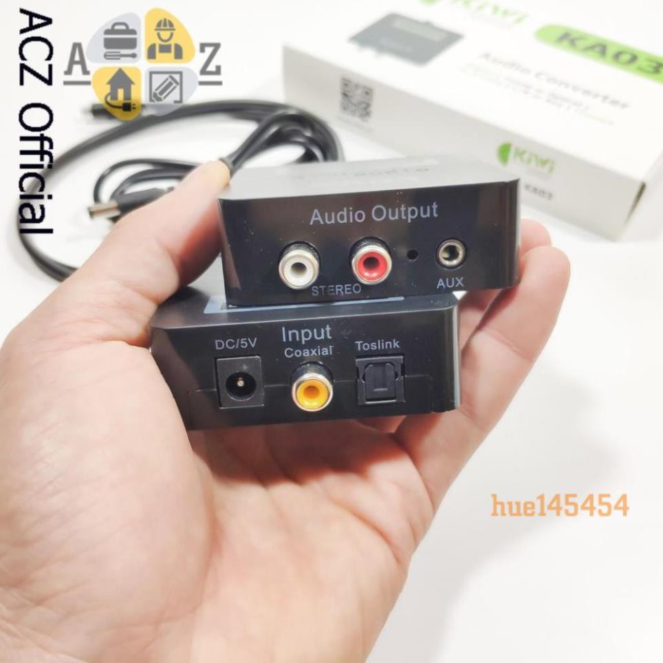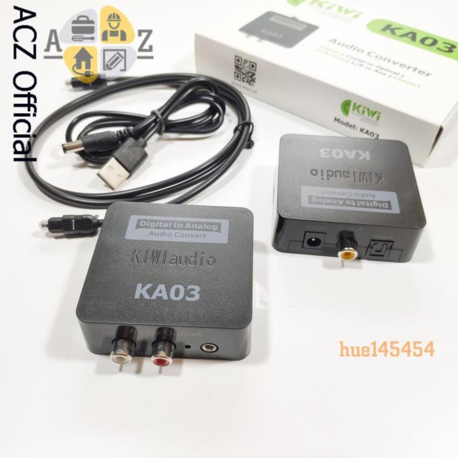 Bộ chuyển đổi âm thanh quang học optical sang AV ra audio KIWI KA03 là sản phẩm chính hãngSản phẩm giúp chuyển đổi tín hiệu quang Optical từ các thiết bị âm thanh sang tín hiệu Analog qua cổng AV và jack 3,5mm.