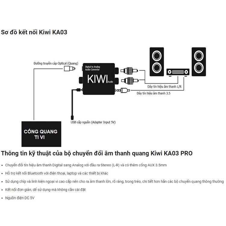 Giới thiệu Bộ Chuyển Quang KiWi KA03 Pro, Tặng Cáp Quang - Đổi Optical TV Sang Cổng AV Và Cổng 3.5 - Ra Amply - Kết Nối Bluetooth
