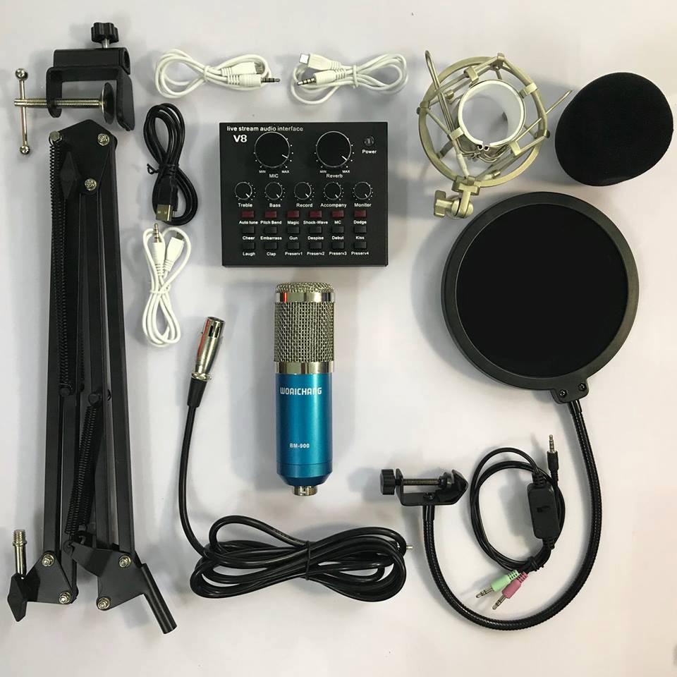 Thiết Bị Âm Thanh > Micro thu âm || (Chuyên Sỉ) Bộ Karaoke Livestream V8 bản tiếng Anh ,Mic BM900, dây livetream,chân kẹp,màng lọc,tặng tai ngheCòn hàng