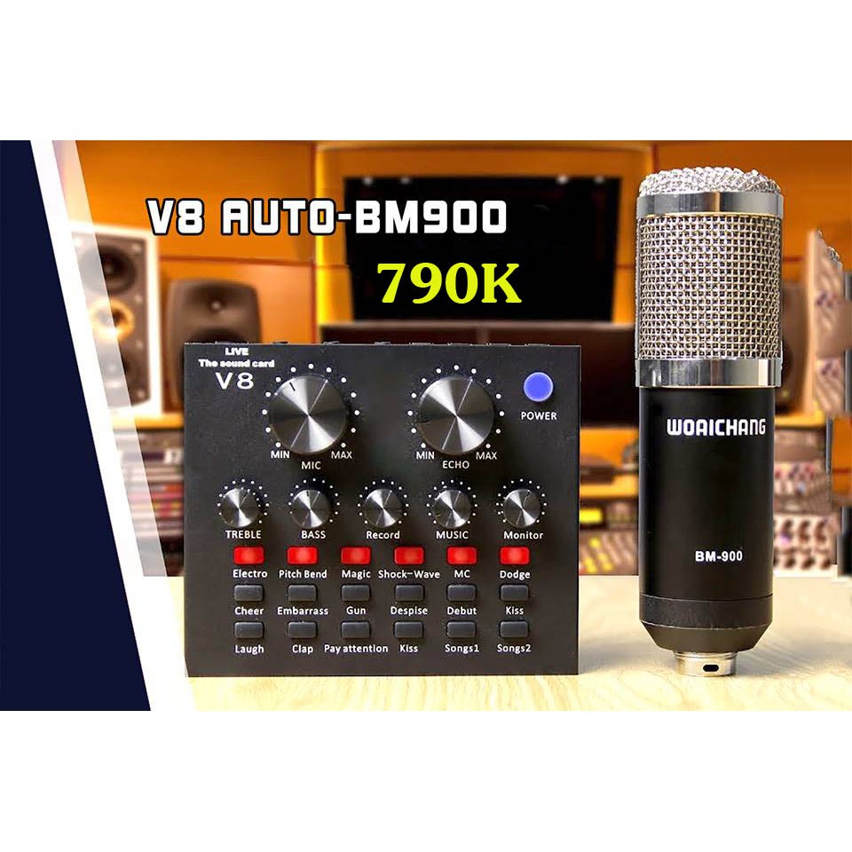 💥 Tên sản phẩm: (Chuyên Sỉ) Bộ Karaoke Livestream V8 bản tiếng Anh ,Mic BM900, dây livetream,chân kẹp,màng lọc,tặng tai nghe