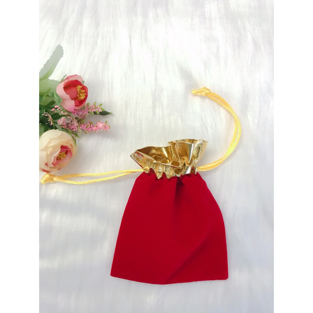 TÚI RÚT NHUNG ĐỎ MAY MẮNKích thước : 10x12 cm (ngang x cao)