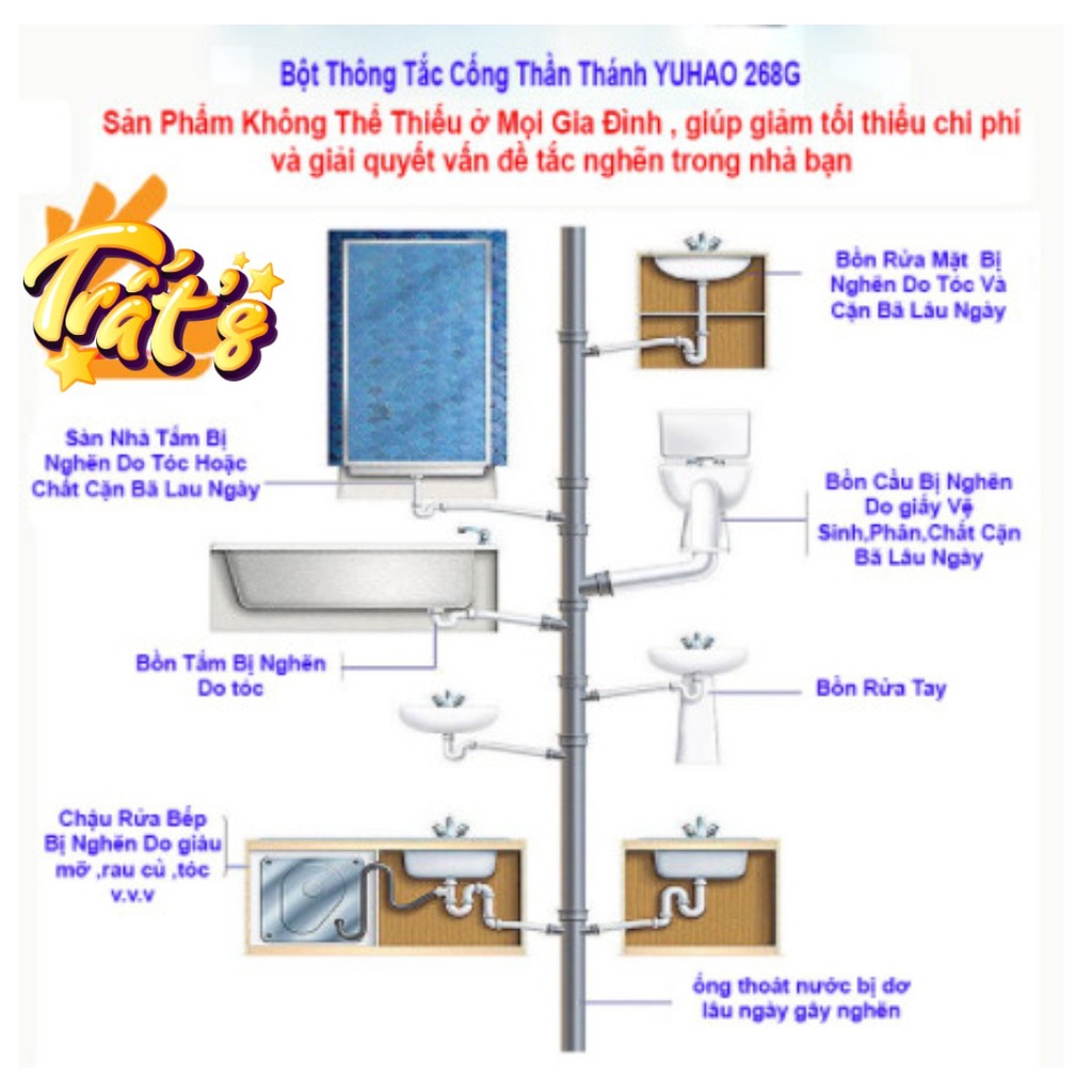 ✪ Bột Thông Cống giúp bạn xoá bỏ lo lắng khi tắc đường ống cống, tắc bể phốt,Bồn Cầu,Bồn Rửa Chén Bát,Thông đường ống ở trong phòng tắm, toilet, và nhà bếp v.v.v