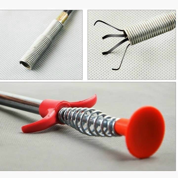 Dụng cụ gắp rác nhỏ thông tắc đường ống tiện ích được thiết kế với lò xo thép cơ động, độc đáo, và dễ sử dụng để loại bỏ các chất cặn bã từ trong ống nhờ vào sự cơ động của lò xo thép.