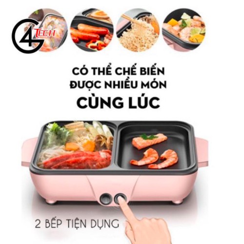 [ CHUYÊN SỈ LẺ ] Nồi Lẩu Nướng Điện , Siêu Chống Dính, Bếp Lẩu Nướng Mini 2 Ngăn Cao Cấp Bảo hành 12 tháng