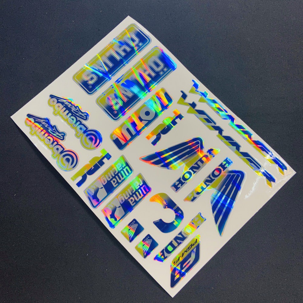 1 BỘ GỒM RẤT NHIỀU STICKER KHÁC NHAU NHIỀU MẪU MÃ KHÁC NHAU CÁ TÍNH, có thể dán trên mọi bộ phận của xe.