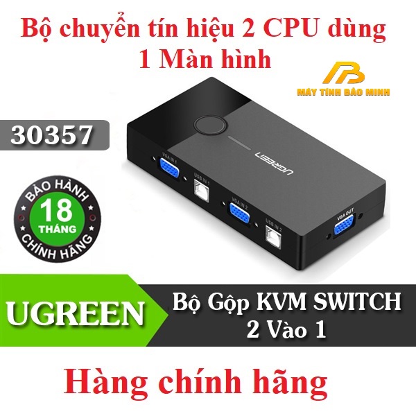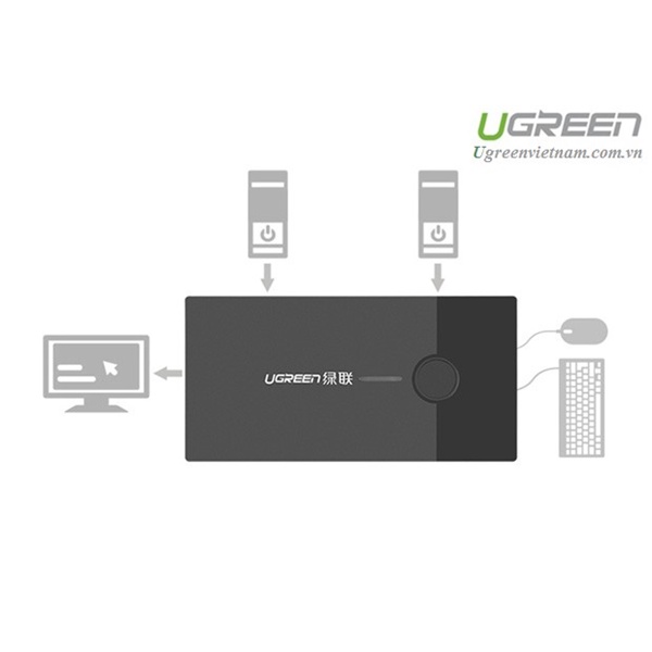 - Bộ KMV Switch Ugreen 30357 là phụ kiện tuyệt vời giúp bạn dễ dàng kết nối dùng chung 1 màn hình chuẩn VGA độ phân giải hỗ trợ lên đến HD 1920*1044 cho 2 CPU một cách dễ dàng và nhanh chóng, ngoài ra Ugreen 30357 còn trang bị 2 cổng USB 2.0 để bạn có thể kết nối chuột, bàn phím điều khiển 2 máy tính của bạn cùng lúc với một nút chuyển tiện lợi, giải pháp hoàn hảo cho các nhu cầu sử dụng nhiều máy tính cùng lúc, tiết kiệm chi phí, thời gian.
