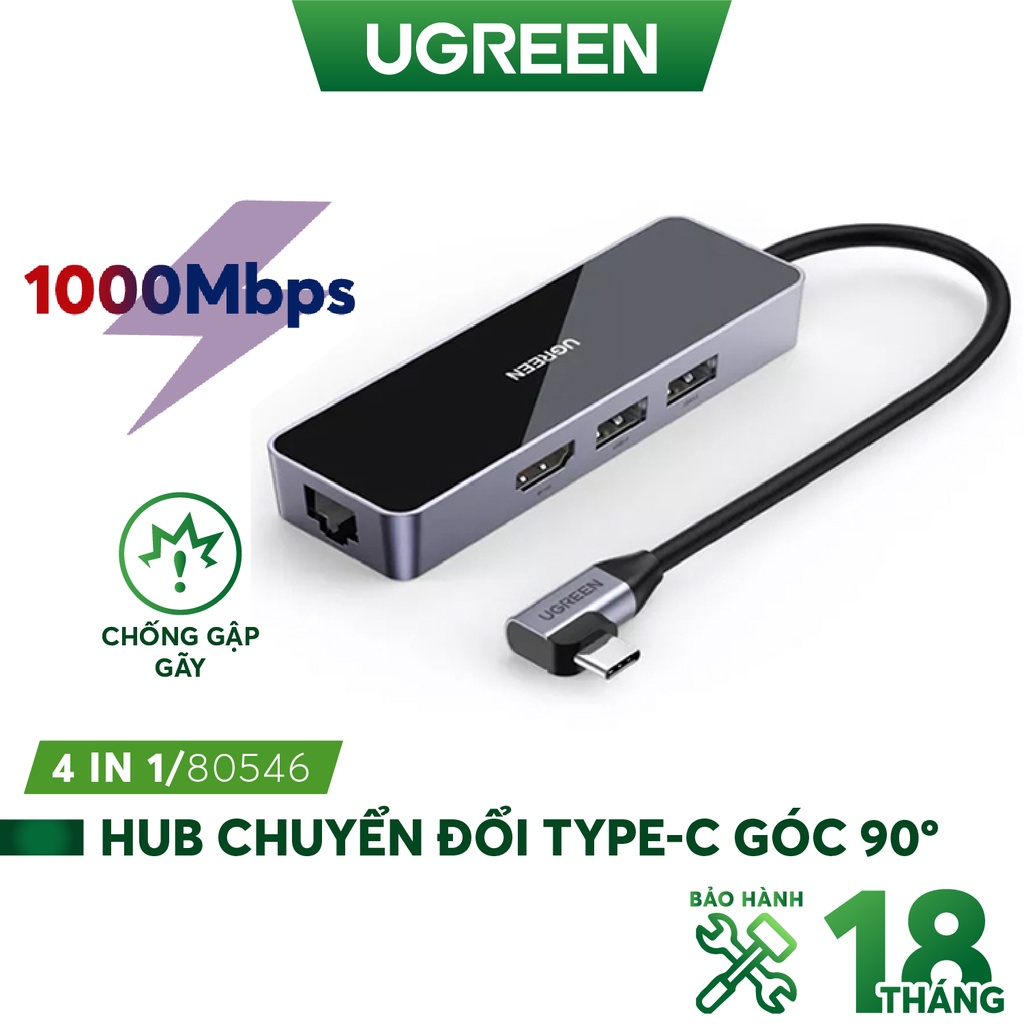 Bộ chuyển Type-C UGREEN 80546 Bẻ Góc 90 Độ HDMI 4K*2K + 2xUSB 3.0 + Lan 1Gbps Cao cấp - Hàng phân phối chính thứcTHỜI GIAN GIAO HÀNG SIÊU TỐC ĐỘ