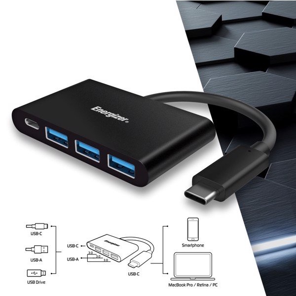 Bộ chuyển Hub Energizer USB TypeC 3.1 gồm 3 cổng USB-A 3.0 và 1 cổng USB-CMã: HC304AC