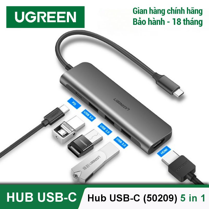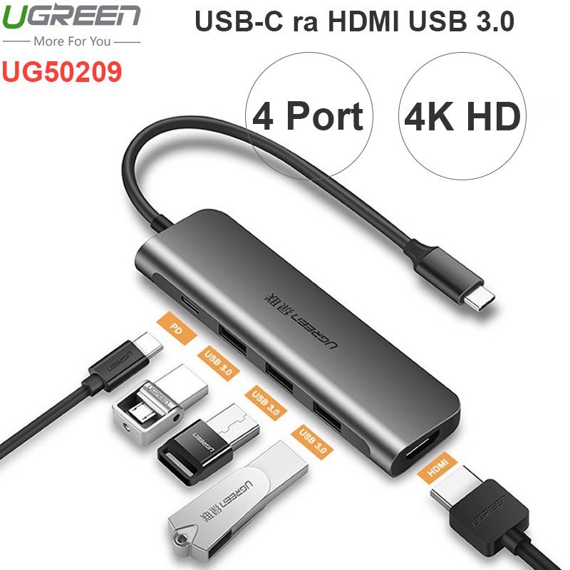 Giới Thiệu Sản Phẩm- Cáp chuyển USB-C to HDMI & USB 3.0 Ugreen 50209 giúp bạn dễ dàng kết nối Macbook, Laptop cổng USB-C của bạn với màn hình HDTV, máy chiếu..vv. hỗ trợ độ phân giải cao lên đến 4K*2K@30Hz mang đến trải nghiệm hình ảnh, âm thanh sống động. Bộ chuyển USB-C Ugreen 50209 còn hỗ trợ 3 cổng USB 3.0 tốc độ cao dùng để kết nối các thiết bị ngoại vi như chuột, bàn phím, ổ cứng di động... với tốc độ truyền tải tín hiệu số lên đến 5Gbps. Ngoài ra, phụ kiện cao cấp này còn tích hợp thêm 1 cổng USB-C hỗ trợ công nghệ sạc PD giúp bạn có thể sạc, cấp nguồn ngay trên thiết bị, không ngại thiếu cổng kết nối.