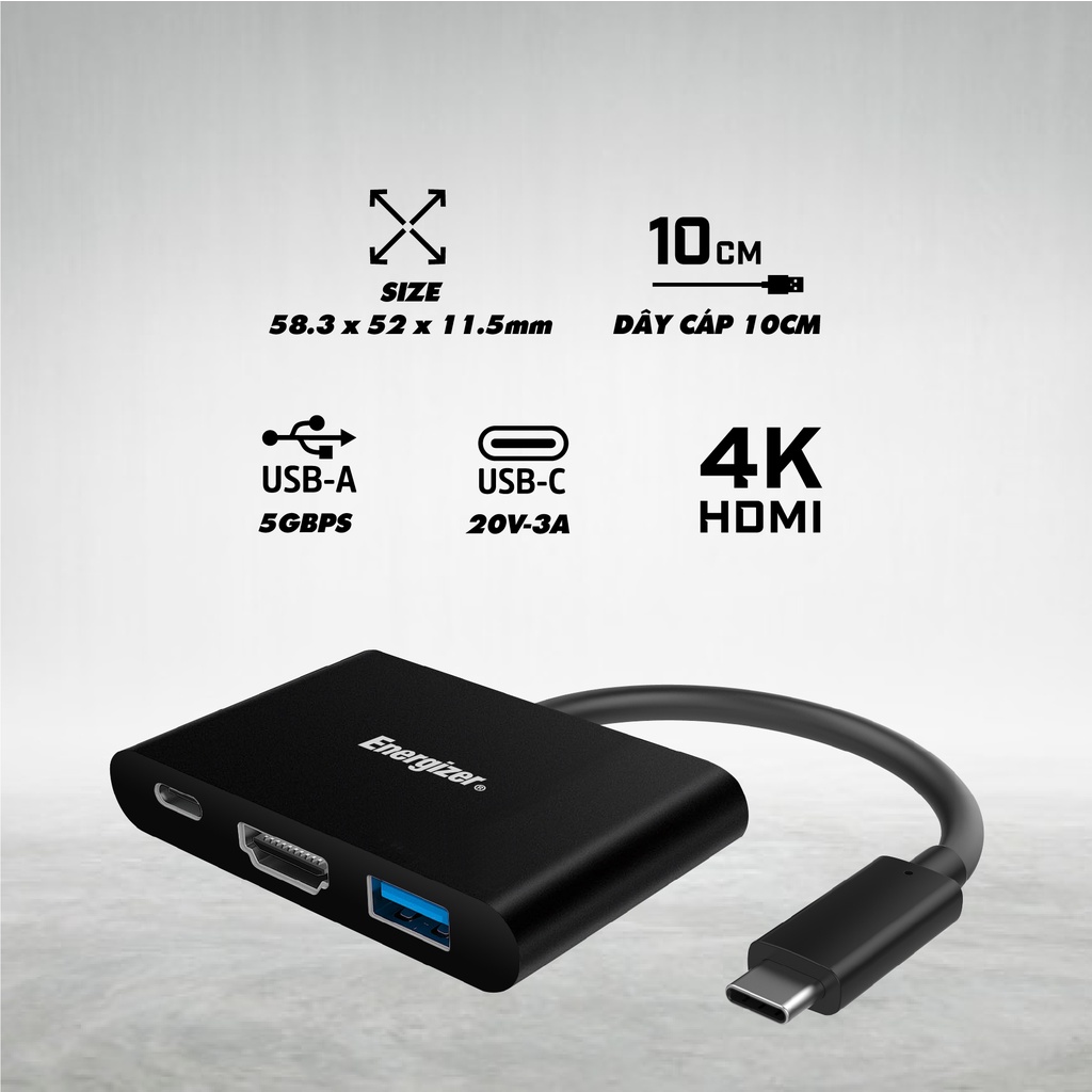 Bộ Chuyển USB-C3.1 Hub Energizer USBA/USB-C/HDMI - HC303CV