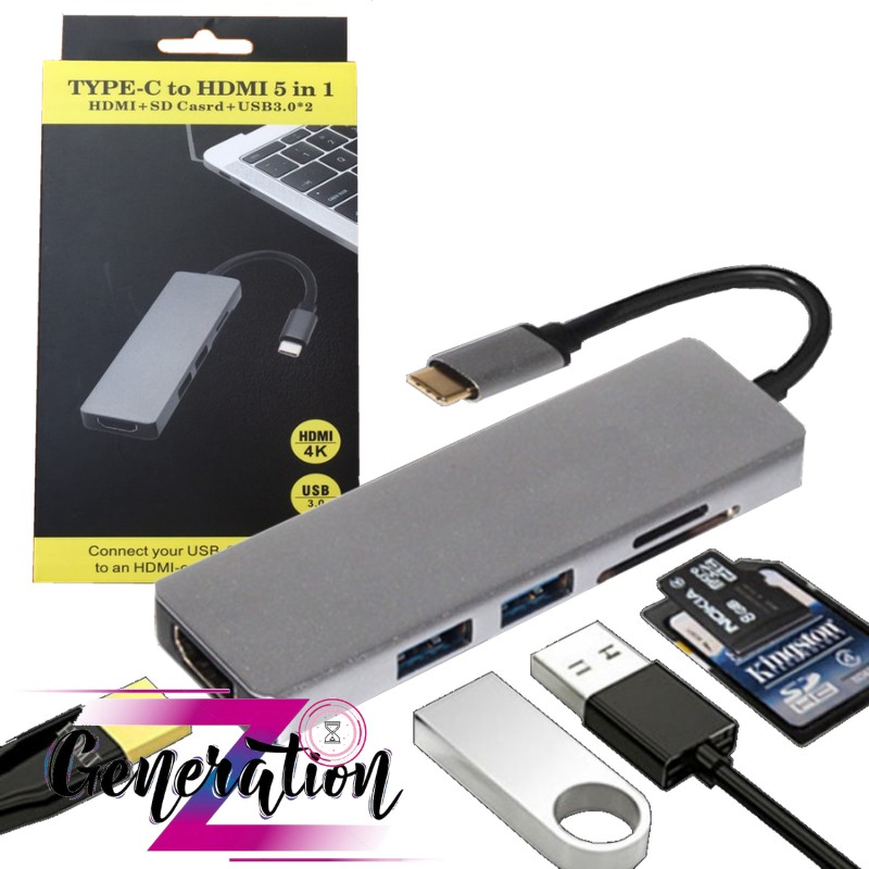 Bộ Chuyển Usb Type-C Ra 2 Port Usb 3.0+ 1 Hdmi + 2 Đầu Đọc Thẻ (5.1)