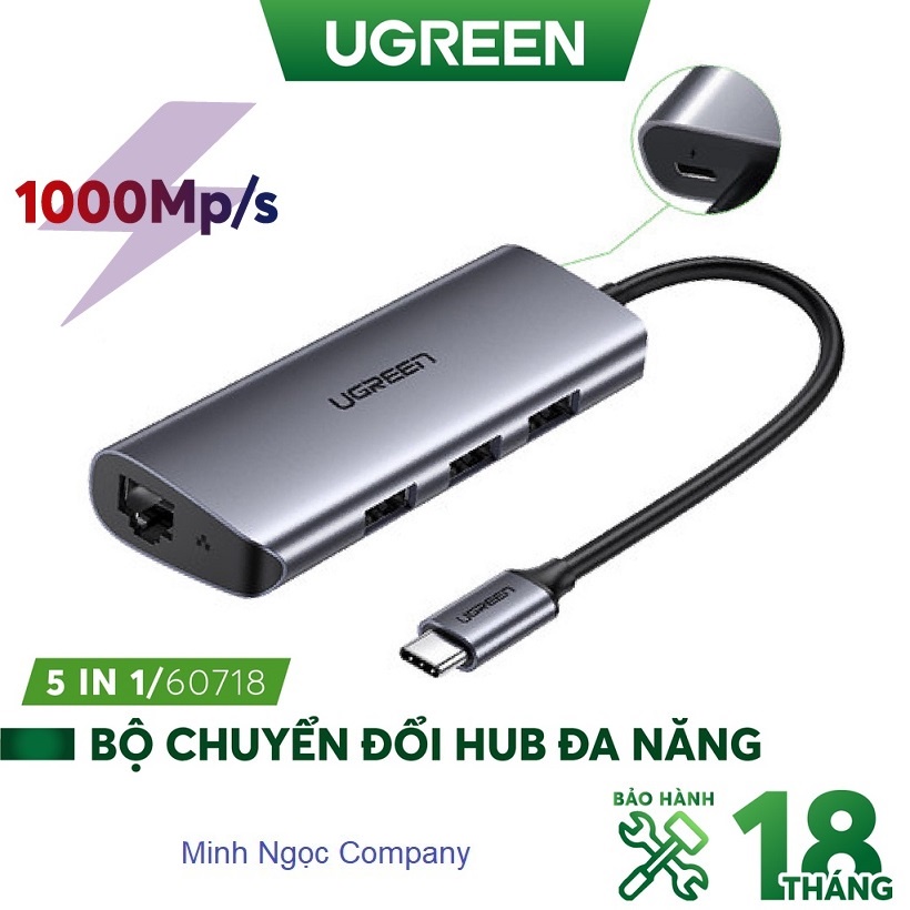 Hub USB Type-C Ugreen 60718 cung cấp giải pháp đơn giản để nâng cấp PC của bạn, mở rộng 3 cổng USB 3.0 và 1 cổng mạng Lan Gigabit Ethernet và cổng sạc Micro USB, USB Type-C, tương thích với Thunderbolt 3, cho phép máy tính xách tay của bạn truy cập nhiều hơn nữa, để làm nhiều hơn nữa.