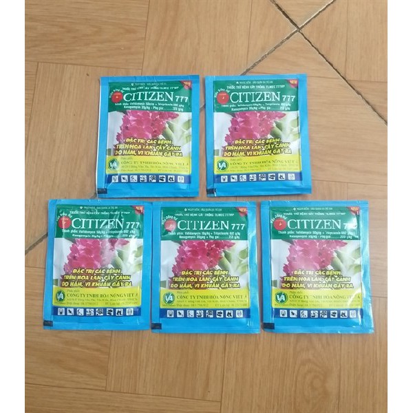 Thuốc trừ bệnh cho cây trồng CITIZEN 777 Đặc trị vi khuẩn và nấm cho hoa lan, cây cảnhThành phần: Validamycin 50g/kg + Tricyclazole 692g/kg và kasugamycin 35g/kg + phụ gia 25%.
