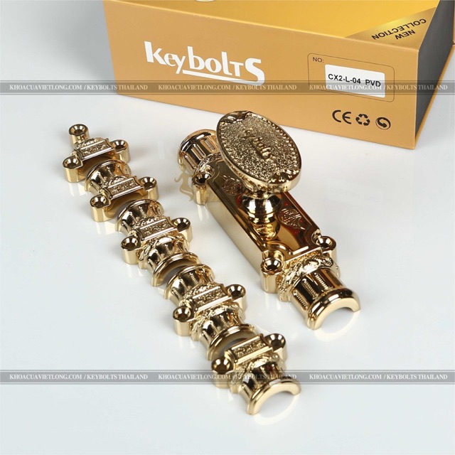 Clemon, chốt cửa đại ( cửa cánh lớn) keybolts đồng thau mạ vàng loại đại