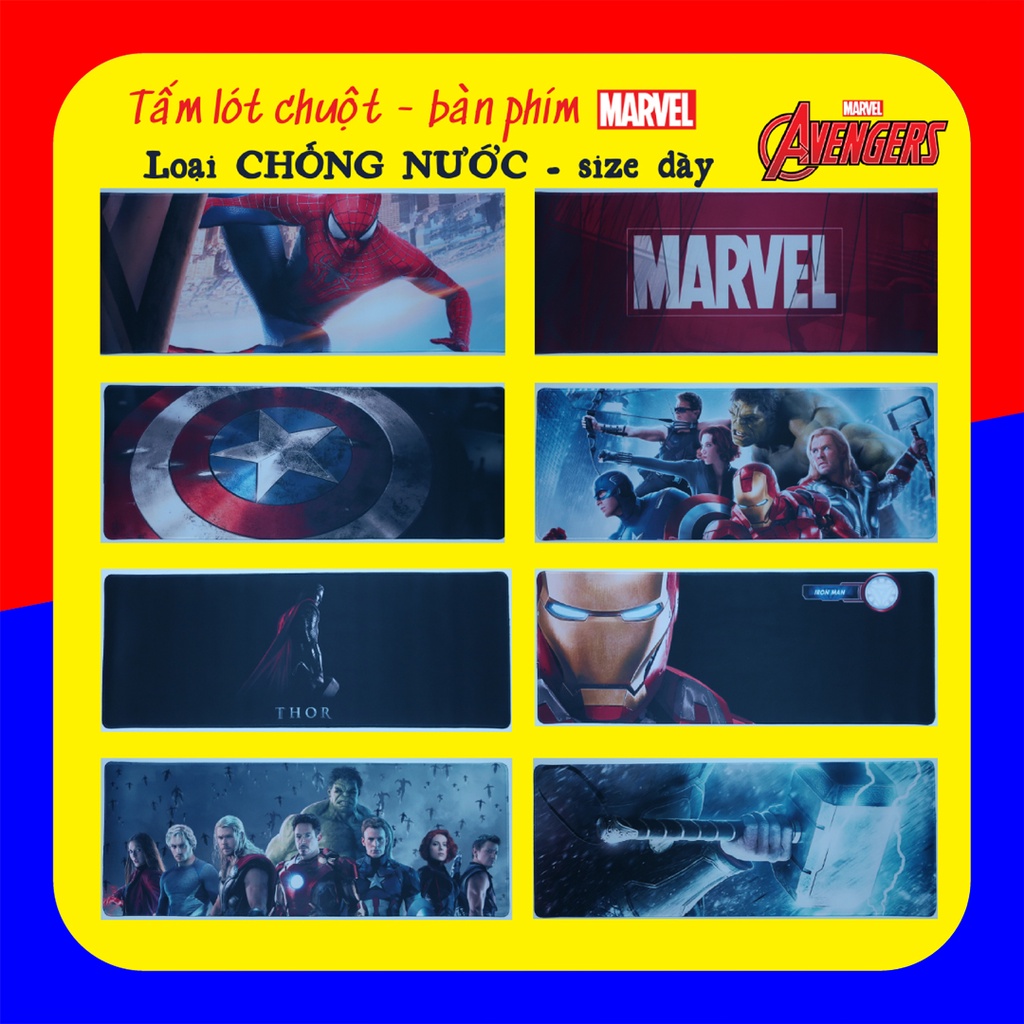 🔥 MARVEL 💥 Tấm lót chuột bàn phím chống nước, loại dày, bàn di chuột loại I, lướt chuột êm, chống trượt, chống nước.🎫 Quý khách bấm [THEO DÕI] để nhận Voucher giảm giá của Shop nhé.