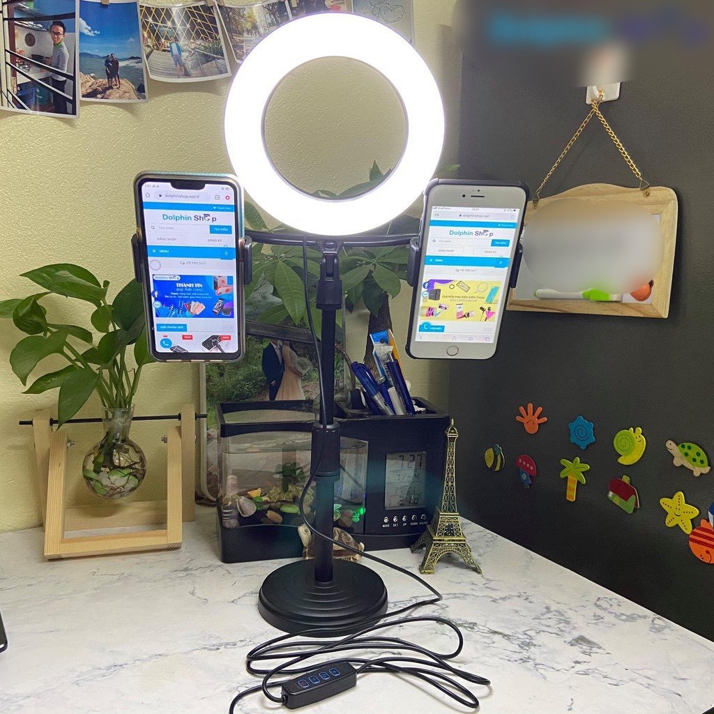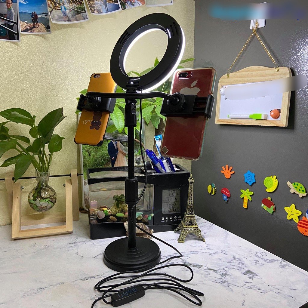 Điện Thoại & Phụ Kiện > Phụ kiện > Phụ kiện selfie > Giá đỡ || [Có Clip] Đèn Livestream Để Bàn Size 16cm Kèm Giá Đỡ 2 Điện Thoại Cùng LúcCòn hàng