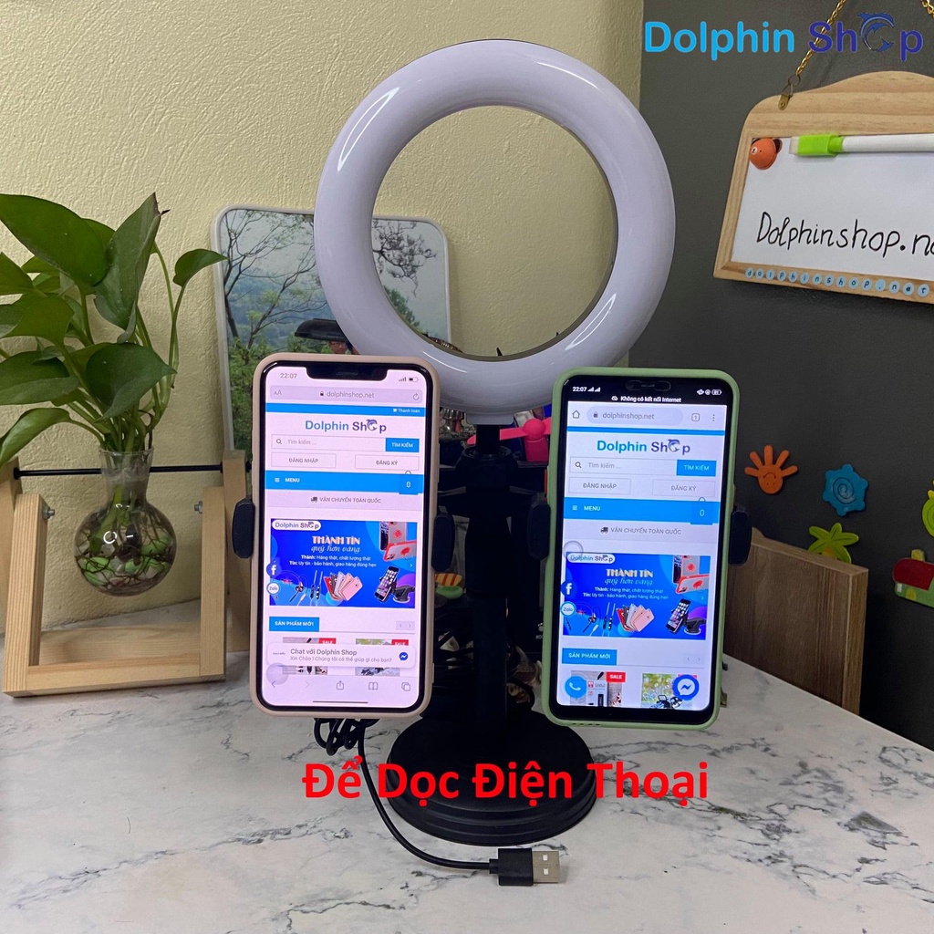 Đèn Livestream Để Bàn Size 16cm Kèm Giá Đỡ 2 Điện Thoại Cùng LúcLàm sao để Livestream bán hàng hiệu quả? Làm sao để Live Stream 1 lúc trên nhiều kênh khác nhau? Hôm nay Dolphin Shop sẽ giới thiệu tới các bạn Bộ dụng cụ hỗ trợ Live stream 2 trong 1 cho bạn giải pháp hiệu quả, cho khung hình đẹp giúp bạn đột phá doanh số.