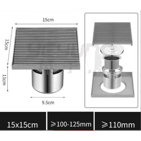 Nhà cửa & Đời sống > Đồ dùng phòng tắm > Khác || [Clip Shop tự quay] Phễu Thoát Sàn Ngăn Mùi Cao Cấp Inox 304 kích thước 15*15cm - Phễu thoát sàn nhà tắmCòn hàng