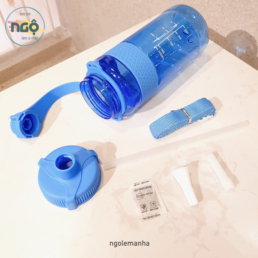 [CLIP THẬT] BÌNH NƯỚC THỂ THAO NQT01 1 LÍT TIỆN LỢI (Combo 4 sản phẩm: Dây đeo + Ống hút có thể tháo rời) - NHỰA CAO CẤP