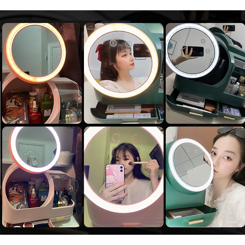 Giới thiệu [Clip tự Quay] Tủ Đựng Mỹ Phẩm Để Bàn Cao Cấp, Tính Năng Đèn LED, Hông Khô Mặt Hàng Mới 2022