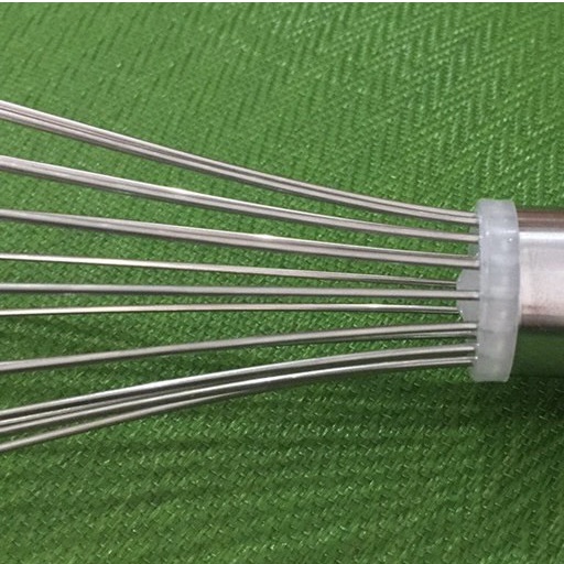 - Dạng hình lồng với đầu tròn với nhiều vòng thép chắc, mảnh, giúp đánh bông nhanh lòng trắng, lòng đỏ trứng.