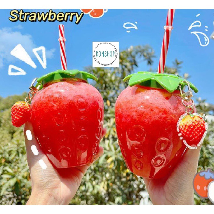 Nhà cửa & Đời sống > Bộ đồ bàn ăn > Bình nước & phụ kiện || [CN004] Chai nhựa hình trái Dâu Tây đựng trà sữa và nước trái câyCòn hàng
