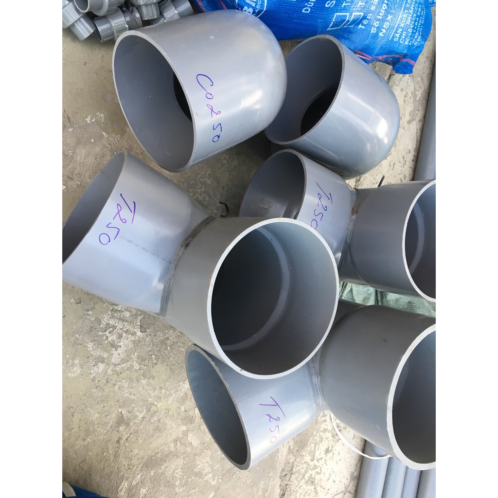 Co 250, Tê 250, nối 250, Lơi 250 hay còn gọi co 45 độ(chếc), Nối Giảm, tê giảm, co giảm, chữ y, tê cong, ren ngoài, y giảm