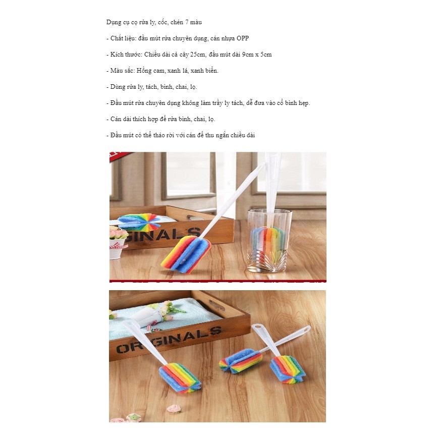 Đầu mút rửa chuyên dụng không làm trầy ly tách, dễ đưa vào cổ bình hẹp.Cán dài thích hợp để rửa bình, chai, lọ.