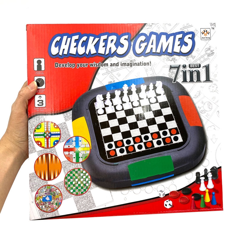 Bộ Cờ 7 Trong 1 2882-23C1 Bên trong sản phẩm có 7 bộ cờ: cờ backgammon, cờ ludo, cờ cá ngựa, cờ vua, cờ checker, cờ rắn leo thang, cờ vòng quanh thế giới. - Đây là trò chơi có tính chất chiến thuật thường dành cho hai người chơi trở lên với nhiều loại cờ khác nhau được tập trung trong 1 hộp cờ - Tiện dụng và tiết kiệm giúp người chơi có thể tha hồ lựa chọn những thú vui khác nhau - Thiết kế thông minh bao gồm 7 trò chơi giúp thẻ có nhiều niềm vui. - Sản phẩm giúp trẻ định hình về tư duy logic đơn giản và phân biệt cơ bản về các trò chơi.