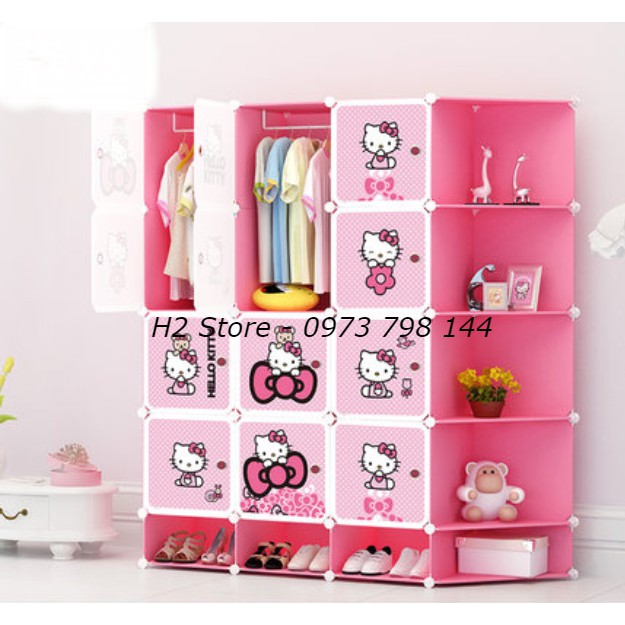 Nhà cửa & Đời sống > Nội thất > Tủ bếp || [CÓ ẢNH THẬT] TỦ NHỰA LẮP GHÉP 16 Ô & 4 GIÀY MÀU HỒNG HÌNH KITTY ĐỂ ĐỒ ĐA NĂNG THÔNG MINH sâu 47cmCòn hàng