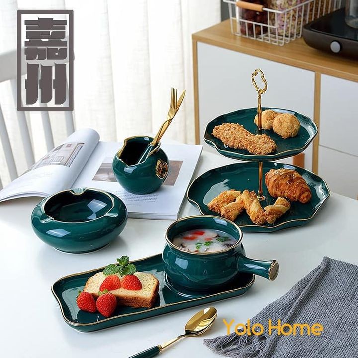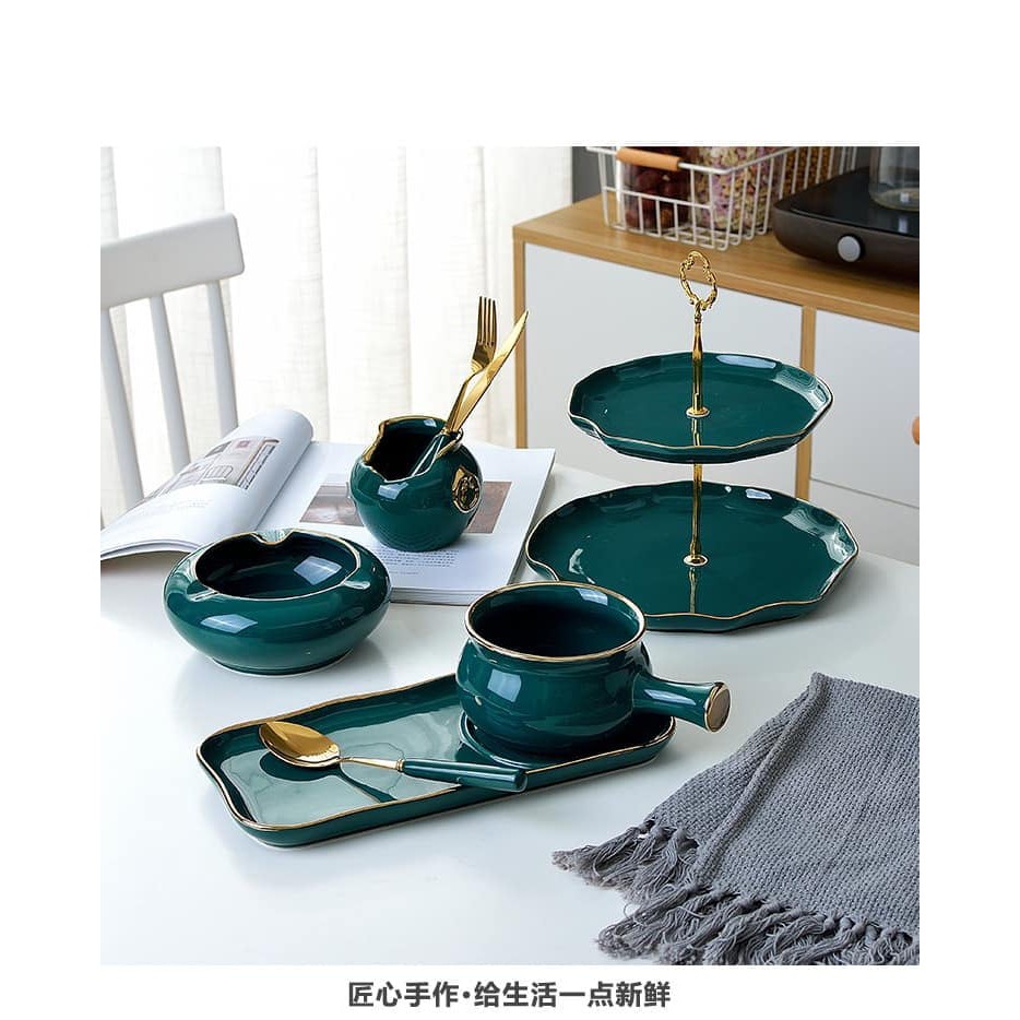 Nhà cửa & Đời sống > Bộ đồ bàn ăn > Dĩa || (CÓ BÁN LẺ)Set ăn sáng xanh cổ vịt ☘𝑭𝑹𝑬𝑬 𝑺𝑯𝑰𝑷☘ bộ ăn sáng phong cách Bắc Âu sang trọng, hiện đạiCòn hàng