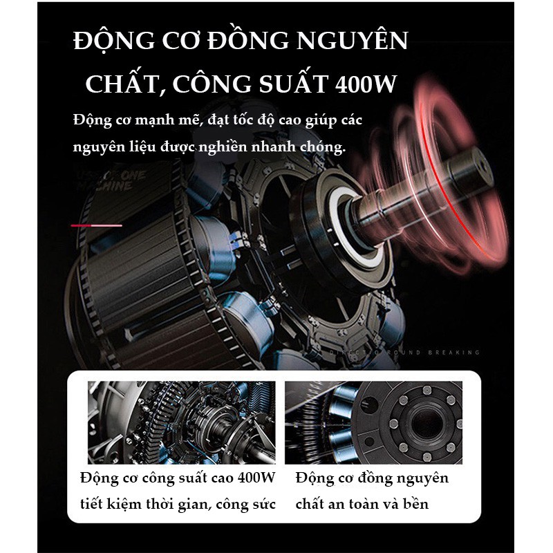☘ Lưỡi xay trục nghiền làm bằng hợp kim: Inox cho tính chất chống rỉ, chống mài mòn, đặc biệt, không tiết ra các chất độc hại, giúp cho nguyên liệu của bạn giữ nguyên chất lượng và an toàn cho sức khỏe. Lưỡi dao sắc bén có độ bền cao giúp cho việc xay trộn dễ dàng và hiệu quả. Trục nghiền của máy làm bằng hợp kim cứng chắc, cho hiệu quả nghiền cao.