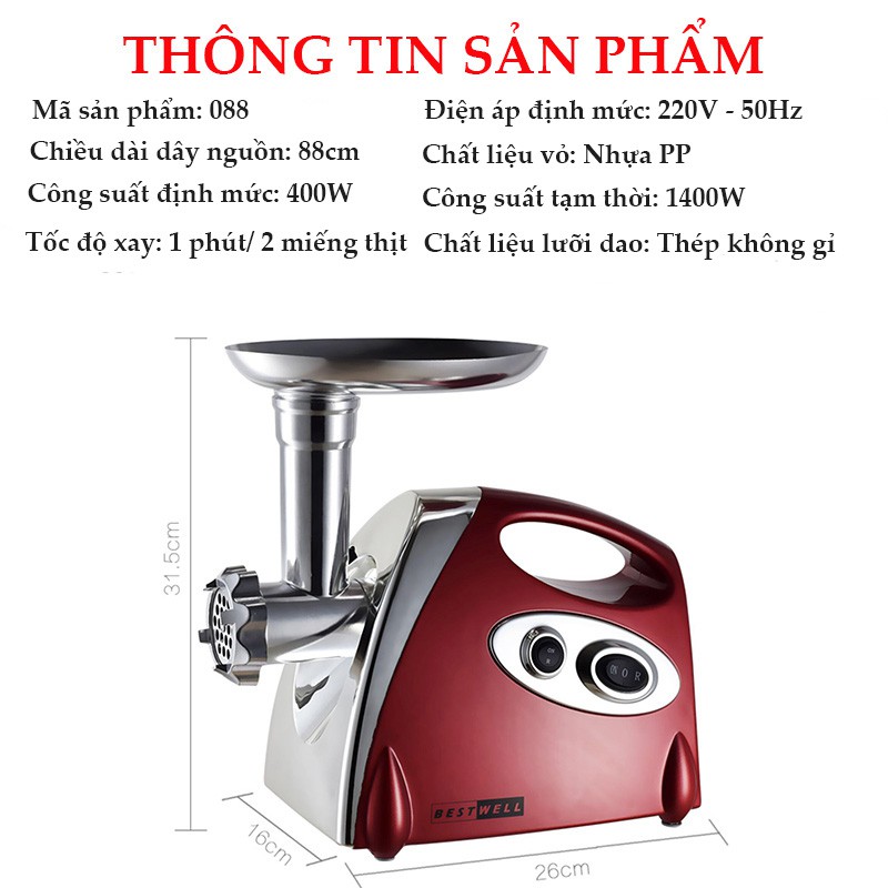 [CÓ BẢO HÀNH] MÁY ĐÙN THỊT, MÁY LÀM XÚC XÍCH, XAY RAU CỦ QUẢ, LÀM GIÒ CHẢ ĐA NĂNG, DỄ THÁO RỜI VỆ SINH - LB147211✨ Thông tin sản phẩm: