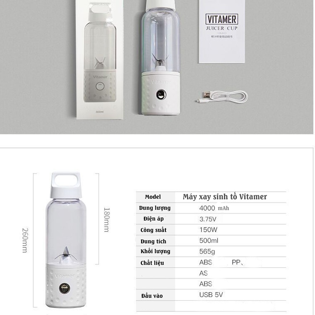 Giới thiệu [Mã ELHA22 giảm 6% đơn 300K] [CÓ BẢO HÀNH] Máy Xay Sinh Tố Cầm Tay Đa Năng Vitamer Dung Tích 500ml Bảo Hành 12 Tháng