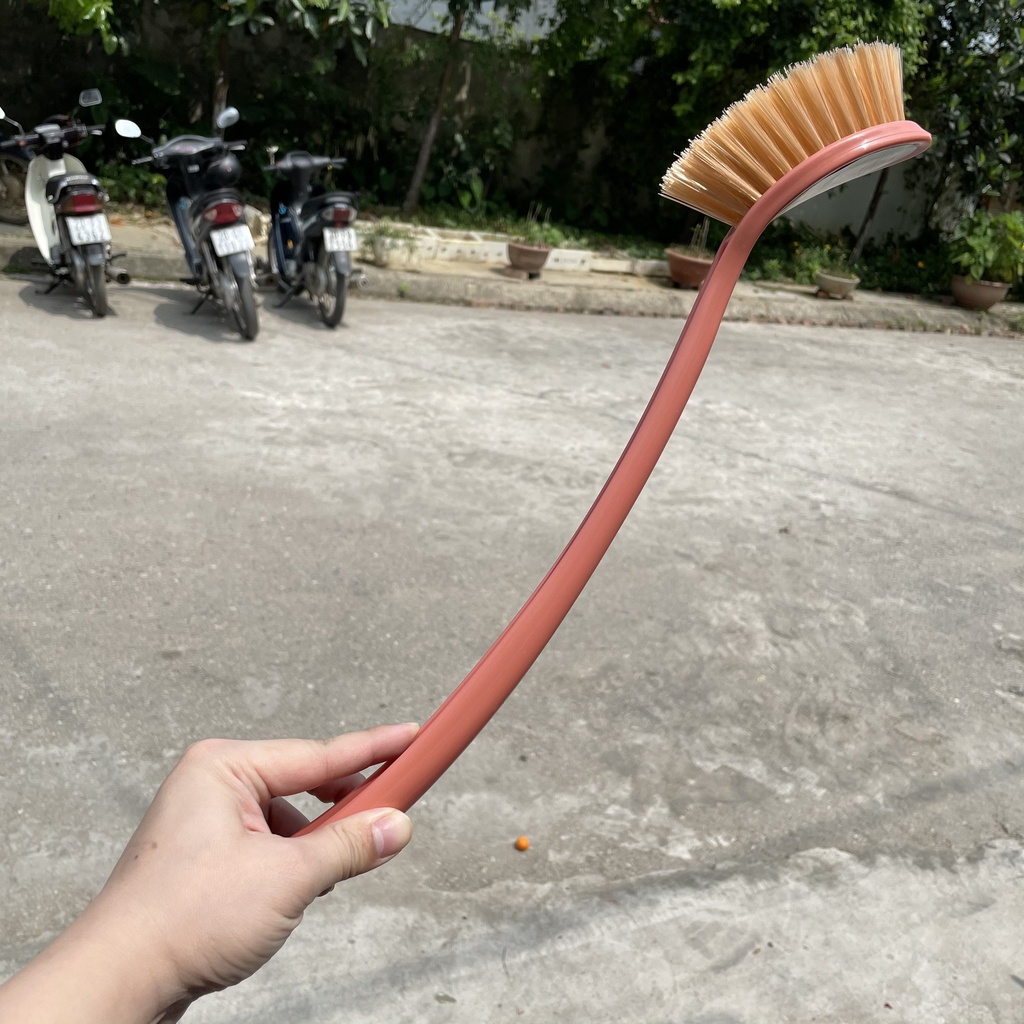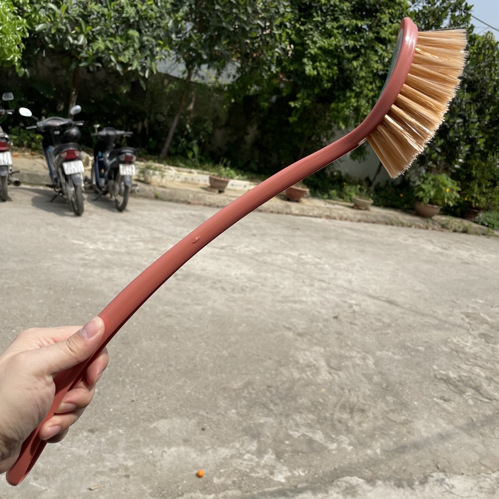 Cọ cong có lông bàn chải được làm bằng sợi nhựa tổng hợp được kết dày giúp gia tăng hiệu quả làm sạch. Cán bàn chải có độ dài vừa phải, có các đường gân nổi làm tăng sự ma sát, giúp người dùng cầm nắm chắc tay và dễ dàng thao tác hơn.