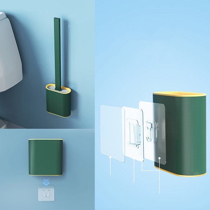 Giới thiệu Cọ Bồn Cầu Silicon Cọ Chà Toilet Thông Minh Có Ống Đựng Dán Tường COTANOW
