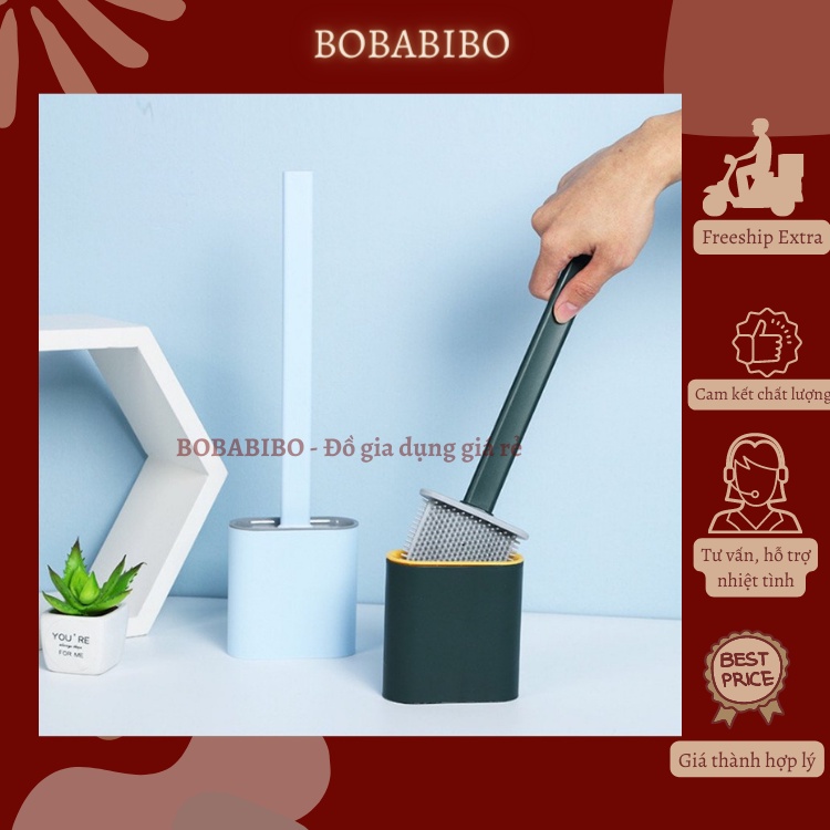 Bộ Cọ Bồn Cầu WC Silicon Chà Cọ Toilet Thông Minh Có Ống Đựng Tặng Kèm Móc Treo Tiện Lợi Tiết Kiệm Không Gian Bobabibo