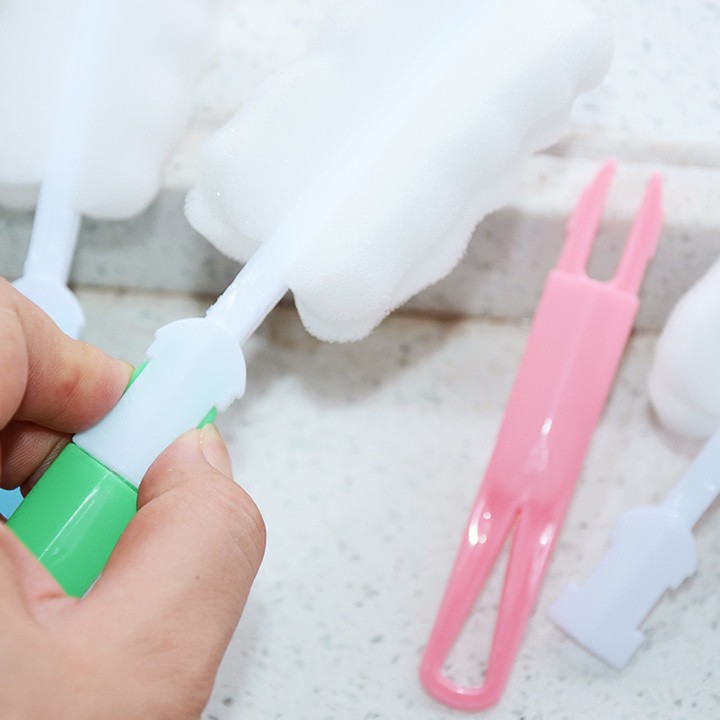 Cọ bọt biển có cán rửa cốc chén bình sữa chai lọ bọt biển