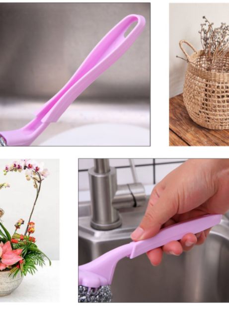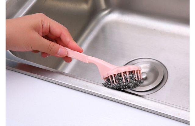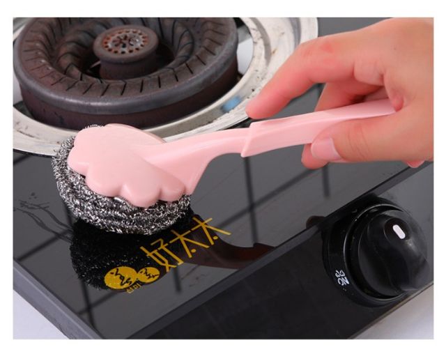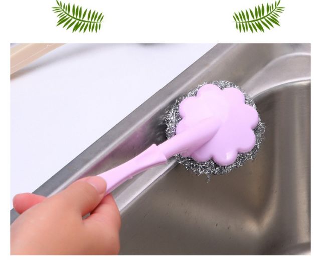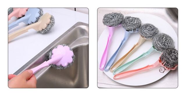 Nhà cửa & Đời sống > Dụng cụ chăm sóc nhà cửa > Miếng bọt biển, miếng chà vệ sinh || Cây cọ bùi nhùi sắt rửa bát xoong nồi chảo làm sạch vết bẩn có cán tay cầm bằng nhựa bềnCòn hàng