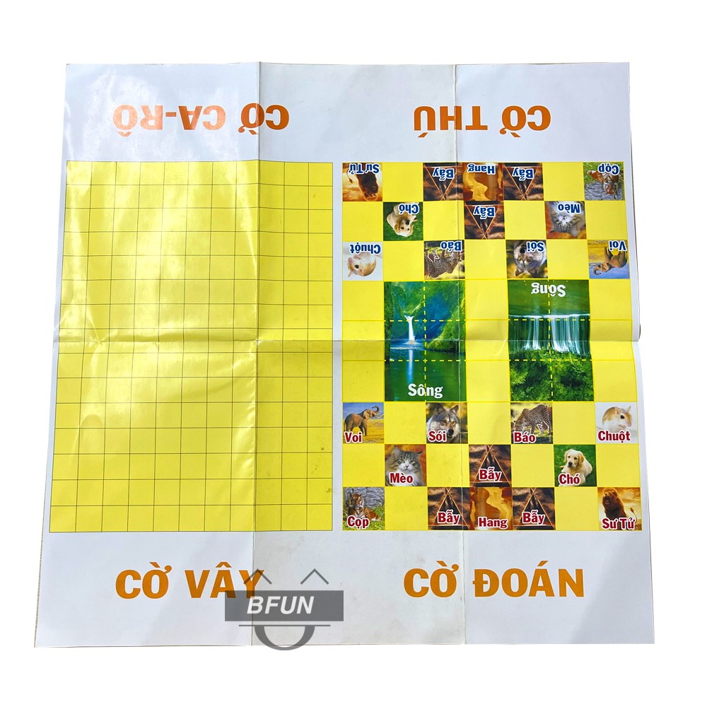 - Bộ cờ 5 trong 1 với 5 trò chơi hấp dẫn: Cờ cá ngựa, cờ ca - rô, cờ vây, cờ thú, cờ đoán