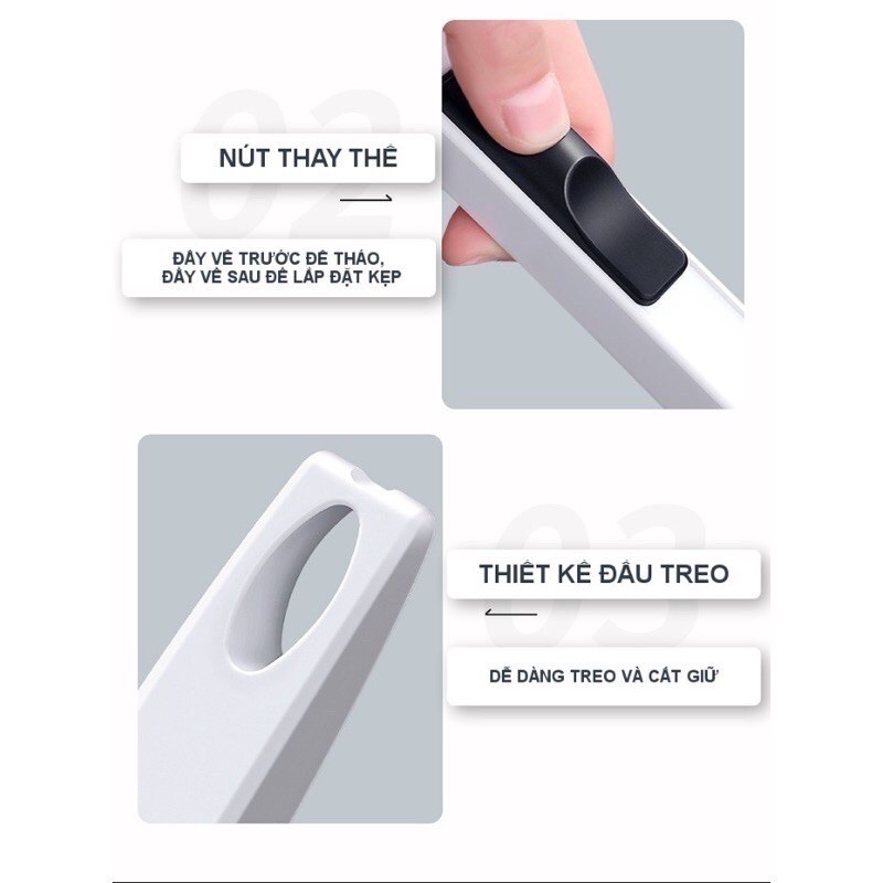 - Với thiết kế vô cùng thông minh, các đầu cọ mút toilet có thể gập và xoay dễ dàng di chuyển, len lỏi vào các ngóc ngách cần làm sạch. Đầu miếng mút sau khi sử dụng xong được loại bỏ, giúp cho toilet và nhà tắm của bạn luôn sạch sẽ, thơm mát và không tích tụ lại vi khuẩn gây bệnh.