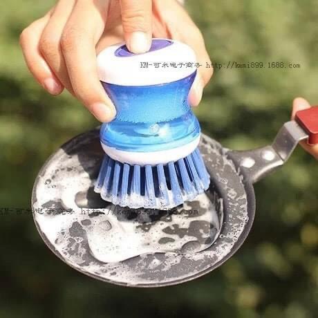 ❗Dụng cụ này có một bầu đựng xà phòng rửa chén bát ở phía trên. Khi bạn cọ xoong nồi, nước rửa chén sẽ tự động chảy xuống phần bàn chải giúp tẩy cọ thật nhanh và sạch.