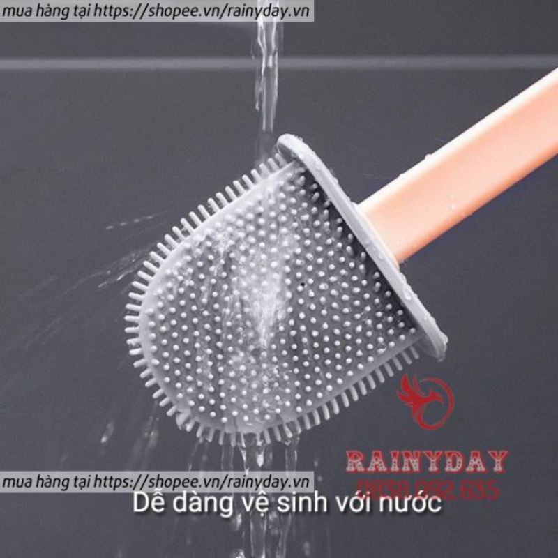 Cây cọ chà vệ sinh toilet bồn cầu đầu silicon có khay tiện dụng