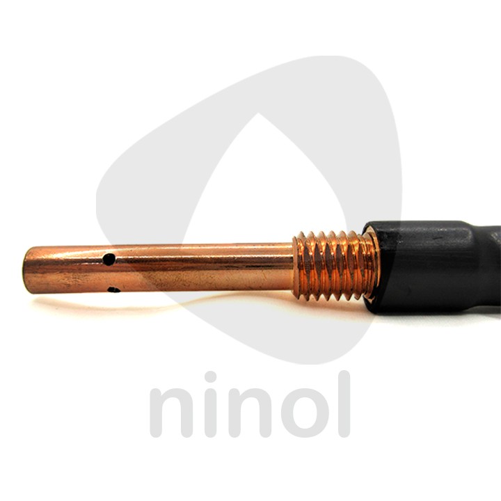 + Ống dẫn dây điện cực còn gọi là ruột gà dẫn dây hàn, định vị và dẫn hướng dây hàn từ bánh xe cấp dây đến béc hàn. Trong quá trình hàn cần đảm bảo cấp dây đều đặn thì hồ quang mới cháy ổn định.