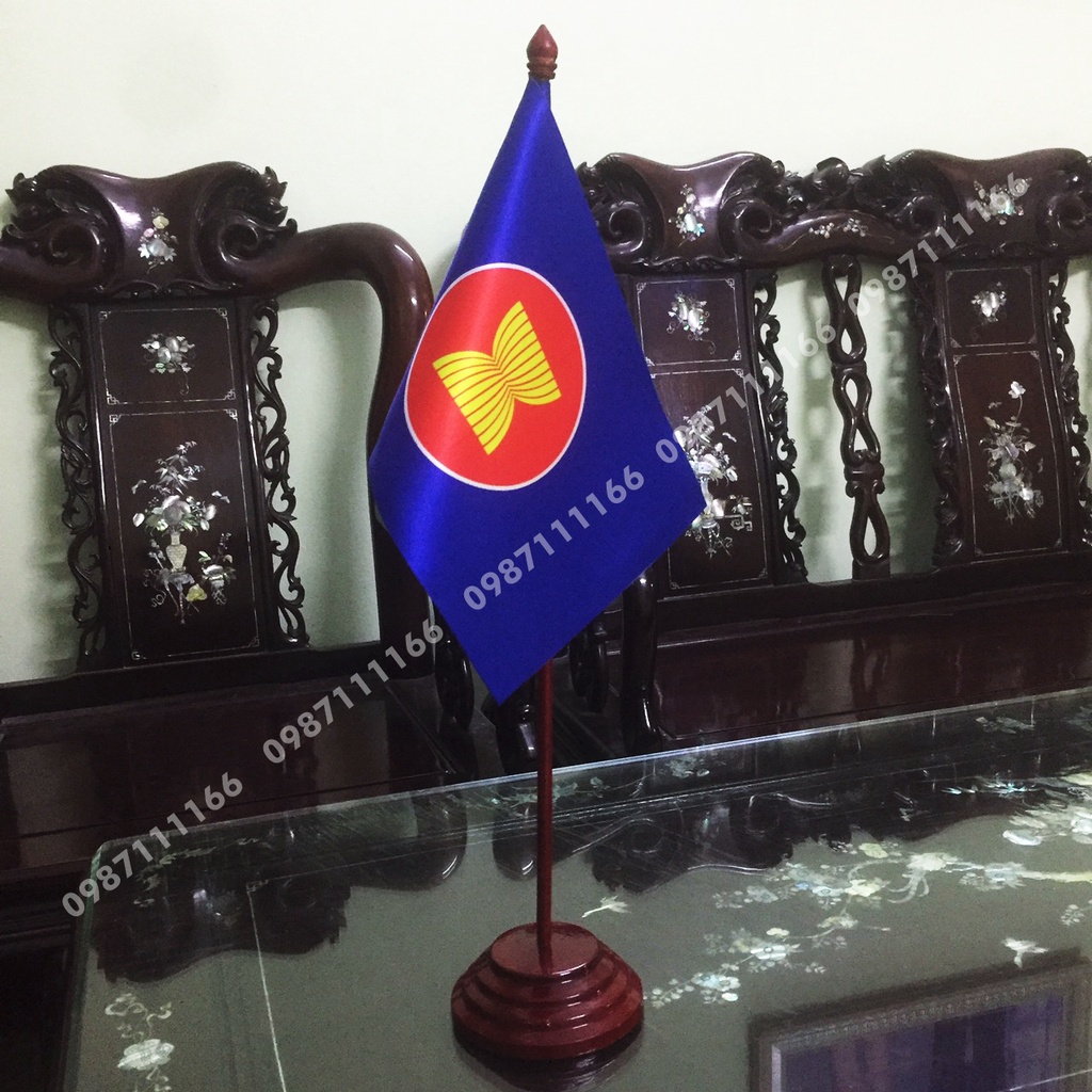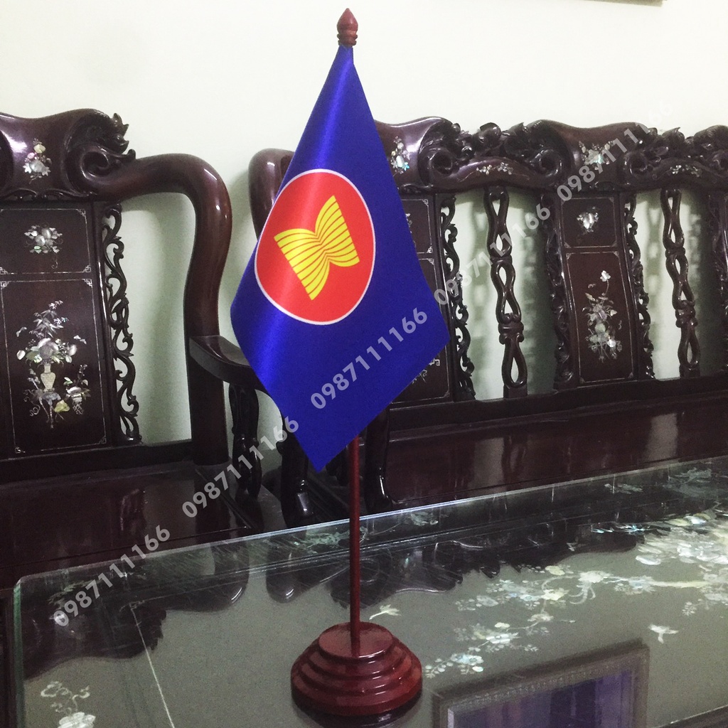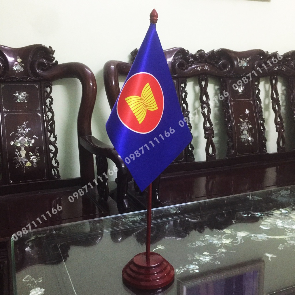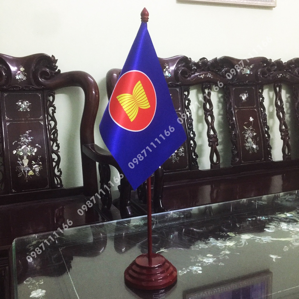 Cờ để bàn đế gỗ loại cắm 1 cờ ASean với chiều cao bộ cờ 50 cm kích thước lá cờ 16x24cm hoặc 14x21cmSHOP CAM KẾT