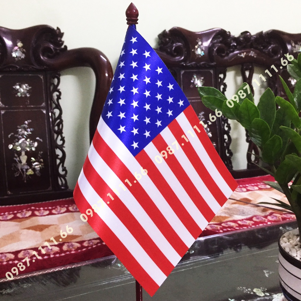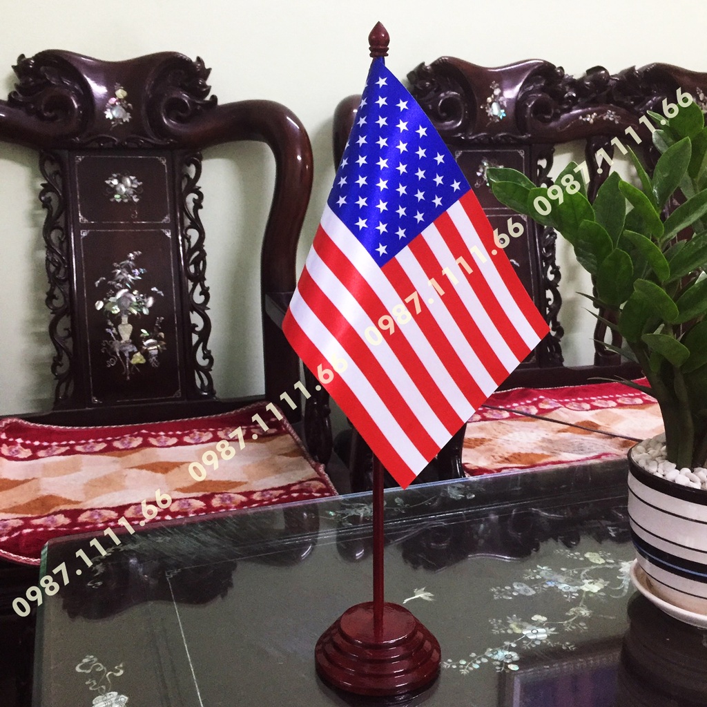 Cờ Để Bàn Đế gỗ Cắm 1 cờ Mỹ In Kỹ Thuật Số Chất Liệu Vải Phi Bóng