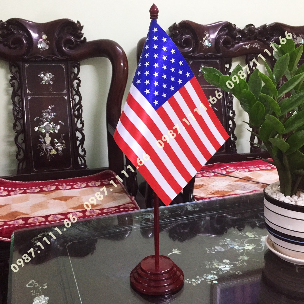 Nhà cửa & Đời sống > Nội thất > Bàn || Cờ Để Bàn Đế gỗ Cắm 1 cờ Mỹ In Kỹ Thuật Số Chất Liệu Vải Phi BóngCòn hàng