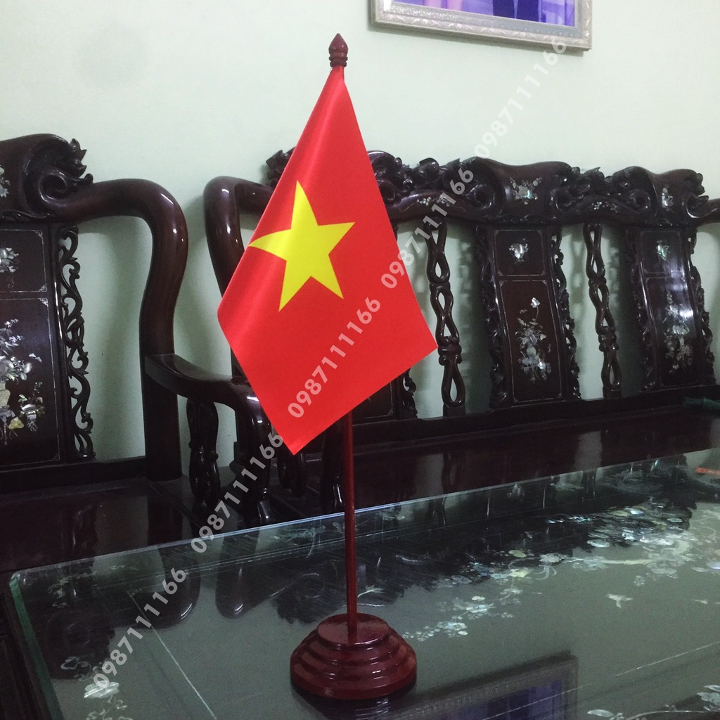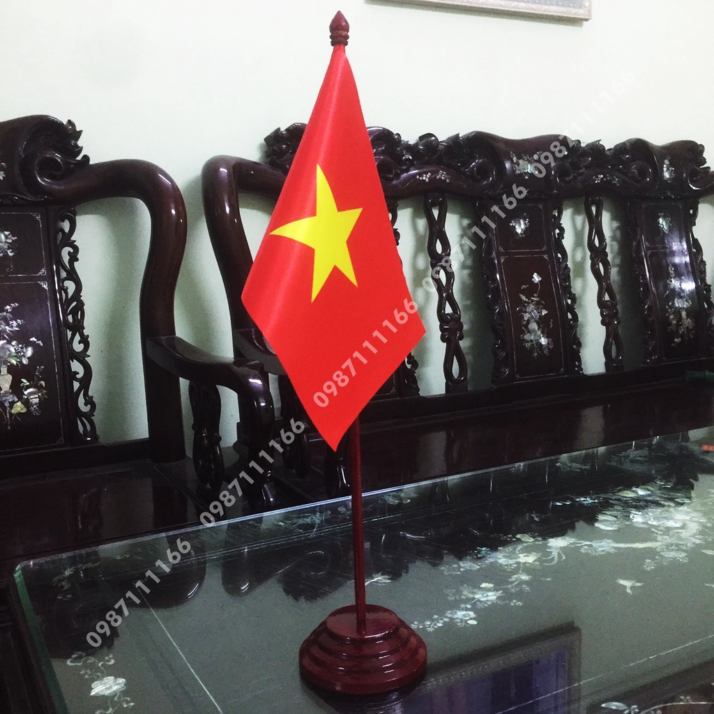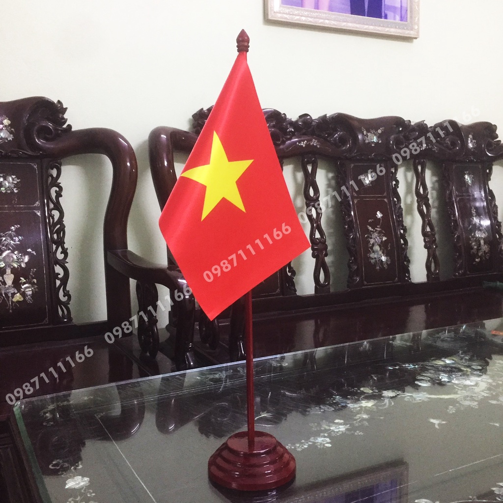 Cờ Để Bàn Đế gỗ Cắm 1 cờ Việt Nam In Kỹ Thuật Số